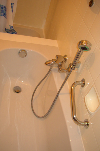 Badewanne. Die Armatur und die Brause gehören zum geliehenen variablen Inventar.