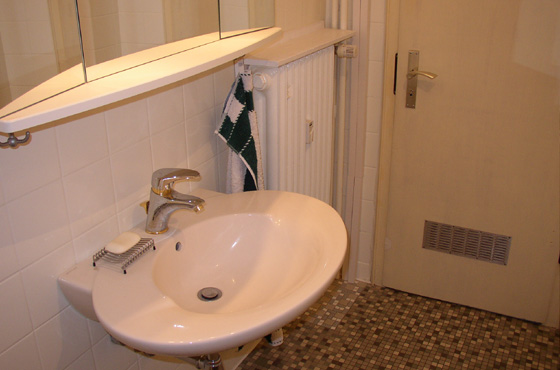 Da das Waschbecken mit dem Elektrodurchlauferhitzer (für Dusche und Bad) verbunden ist, hat man hier unkompliziert warmes Wasser. (Bei dem früheren Gasdurchlauferhitzer war das übrigens nicht problemlos der Fall!).